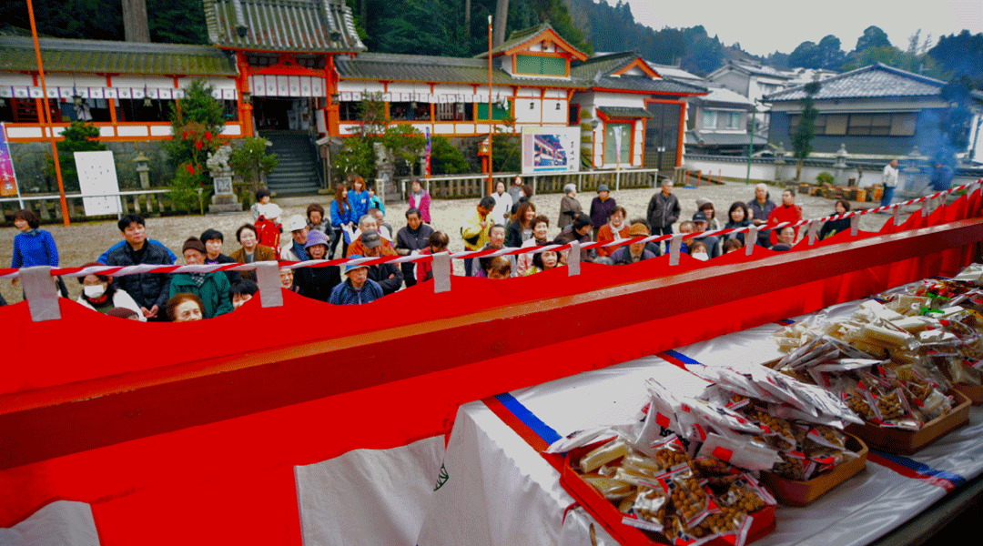 節分祭は、毎年立春の2月3日に行われ、毎年多くの参拝者の方で賑わいます。祭典後、その年の年男・年女が奉祝台から豆まきを行う神事が行われ、健康祈願の甘酒が振る舞われます。