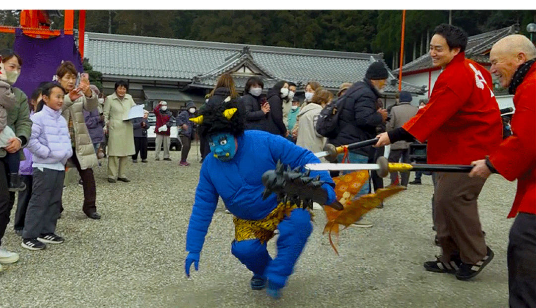 境内で鬼が大暴れすると、赤盾・赤矛で鬼退治。